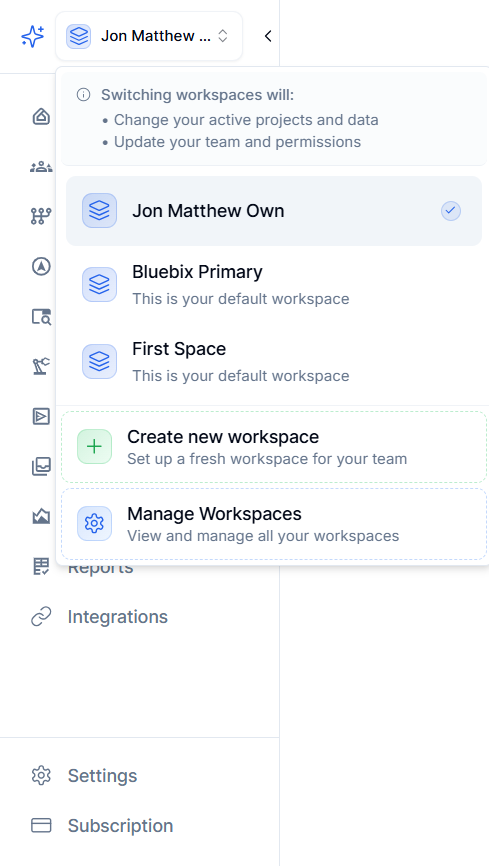 Workspace Dropdown Menu