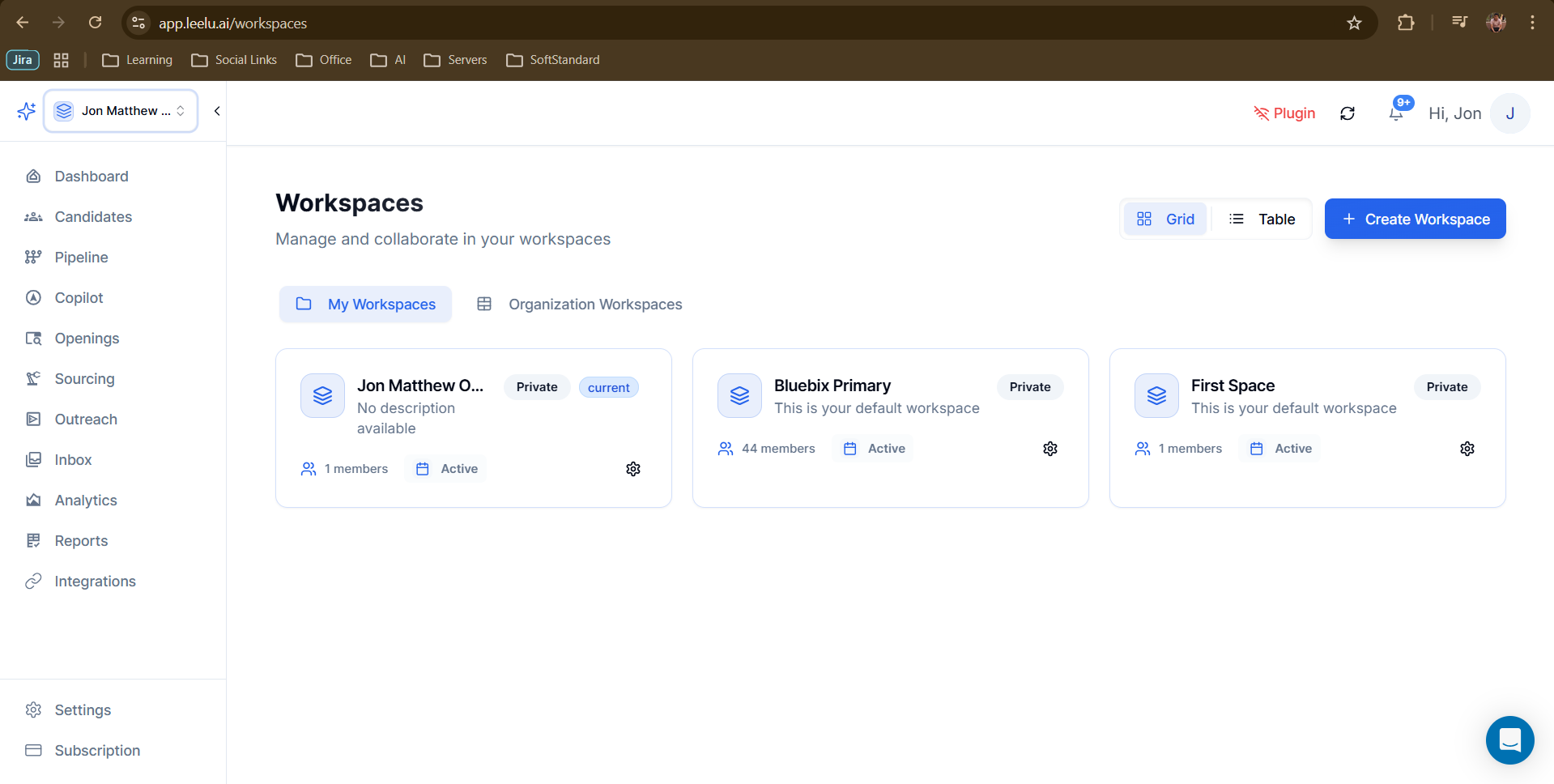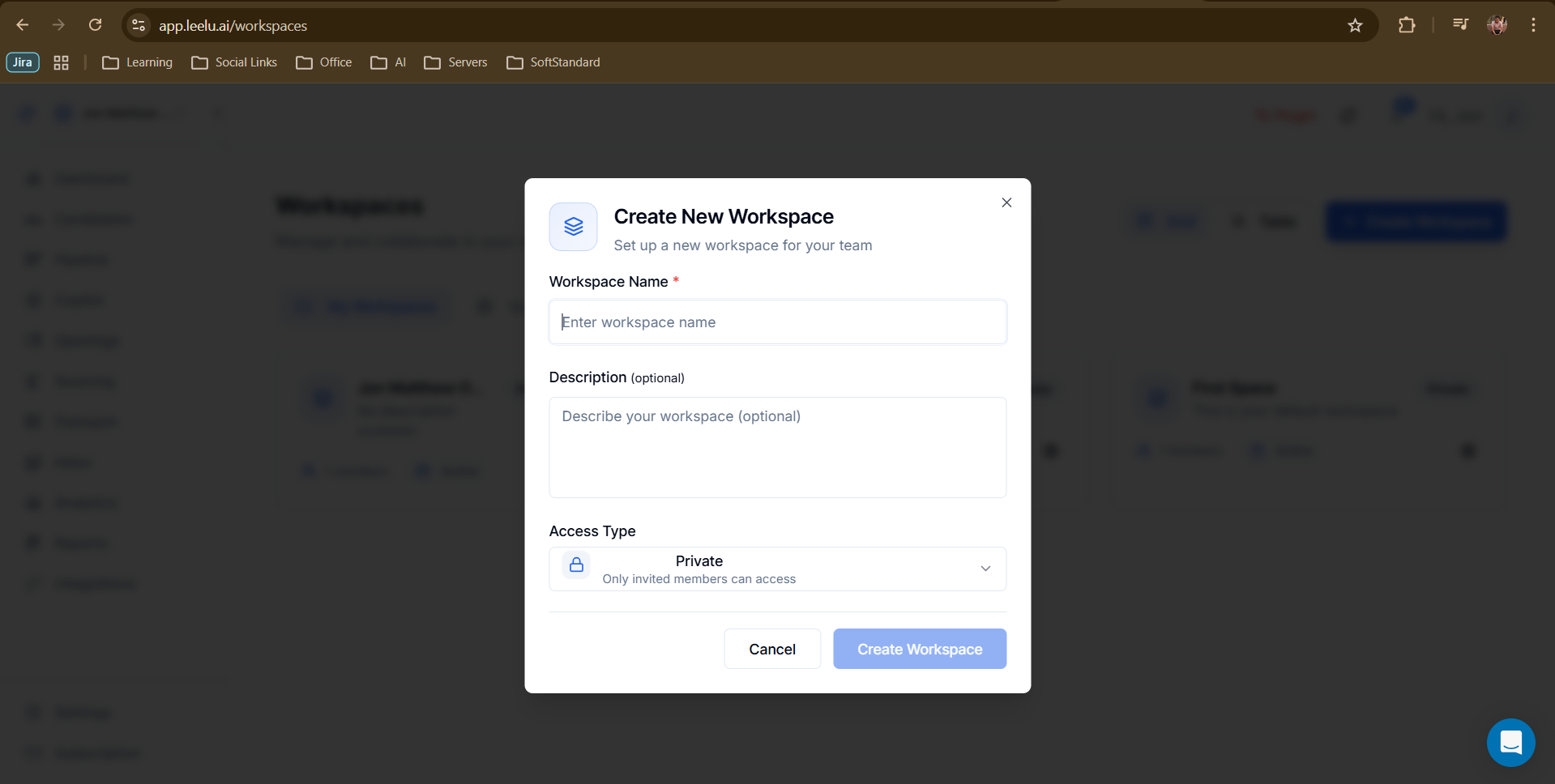 Creating additional workspaces allows you to organize recruitment activities by team, department, or project with complete data separation.