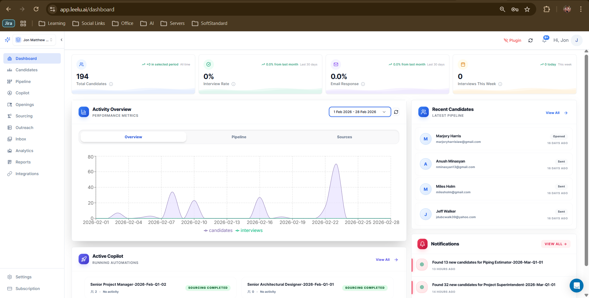 Your Leelu.ai dashboard is the central hub for monitoring recruitment activity, tracking candidate engagement, and managing your AI-powered campaigns.